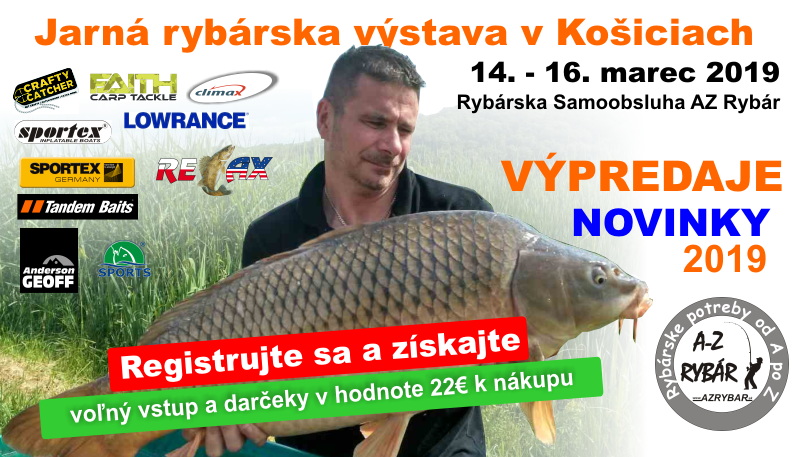 - exkluzívny KUPÓN s -13% zľavou na nákup v e-shope azrybar.sk (zašleme obratom na váš e-mail po tom, ako sa zaregistrujete na výstavu)