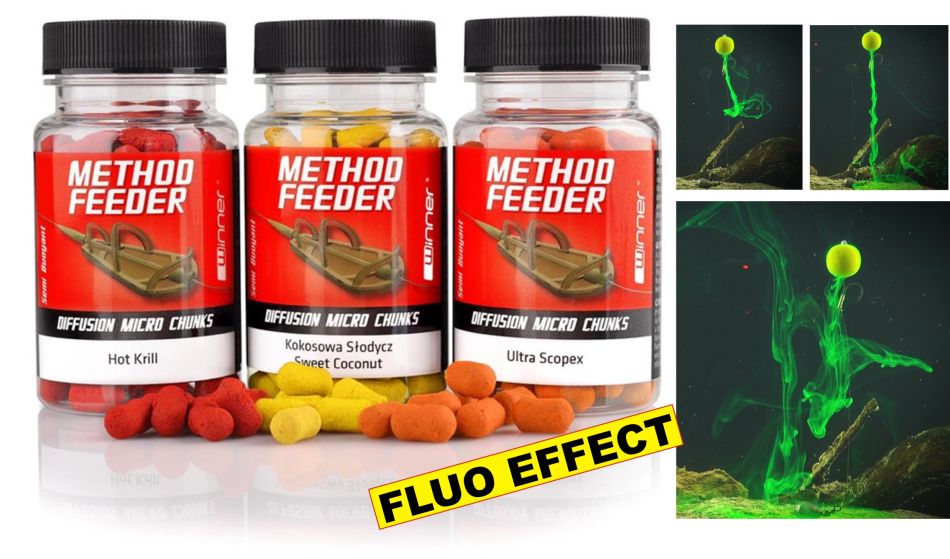 Z nástrahy DIFFUSION sa okamžite po vhodení do vody začne intenzívne uvoľňovať fluorescenčná farba aj s arómou, ktoré vábia rybu z veľkej diaľky. Ryby vidia mrak akoby zvírenej vody a cítia silnú arómu. Žiadna ryba takejto nástrahe neodolá. Je ideálna pre jazerá a vodné nádrže, ktoré sú pokryté bujnou vegetáciou s hrubou vrstvou blata. Uvoľňujúci sa mrak priláka ryby aj do obzvlášť neprístupnej vody.