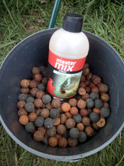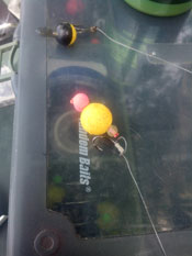 V druhej polke pretekov sme sa rozhodli experimentovať. Susedný tým na stanovisku č.1 mal pár úspešných záberov na zigrig, čím si upevnil vedúcu pozíciu. Čas sa krátil a už sme nemali čo stratiť. Vyskúšali sme teda lov v stĺpci. Lov na Pop up 5 či 10cm nad dnom pre nás nebol nič nové, ale chytať rádovo v 100cm výške sme ešte neskúšali. Po prvých pokusoch a doladení montáží sme sa rozhodli vyskúšať dva prúty do stĺpca. Na prvom prúte sme použili 3m nadväzec s Pop up 18mm ananásovou príchuťou s flouro dumblskou a na druhý 4m nadväzec s 14mm zig ball dipovaný v dipe Indian hot spice. Montáže sme umiestnili nad zakŕmené miesto.