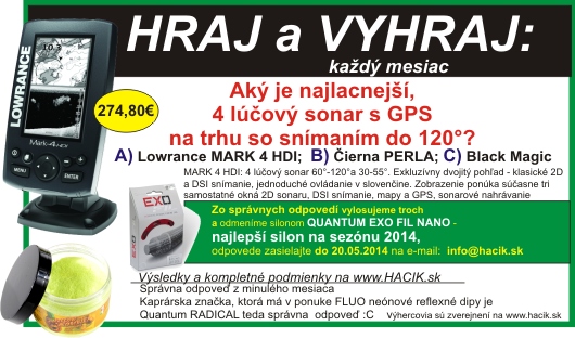 Hore uvedení súťažiaci získavajú ceny, ktoré uvádzame nižšie. Ďakujeme všetkým za účasť v Letnej úlovkovej súťaži 2018 a tešíme sa na ďalší ročník.