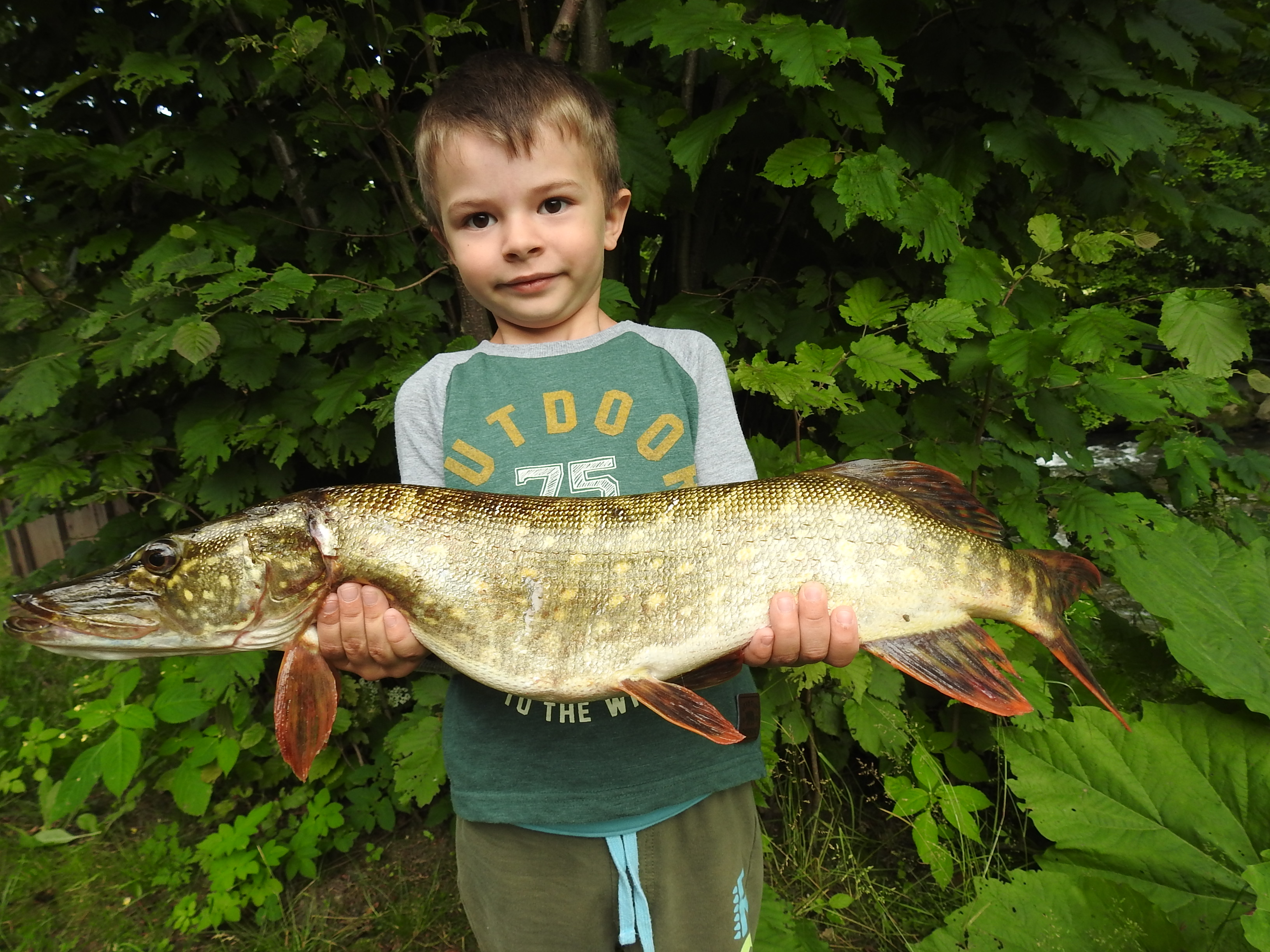 Štuka severná, 65 cm, nevážená,Plávaná, Dáždovka.19.6.2018 rybník, Lukáško Kráľ vytiahol na breh :)