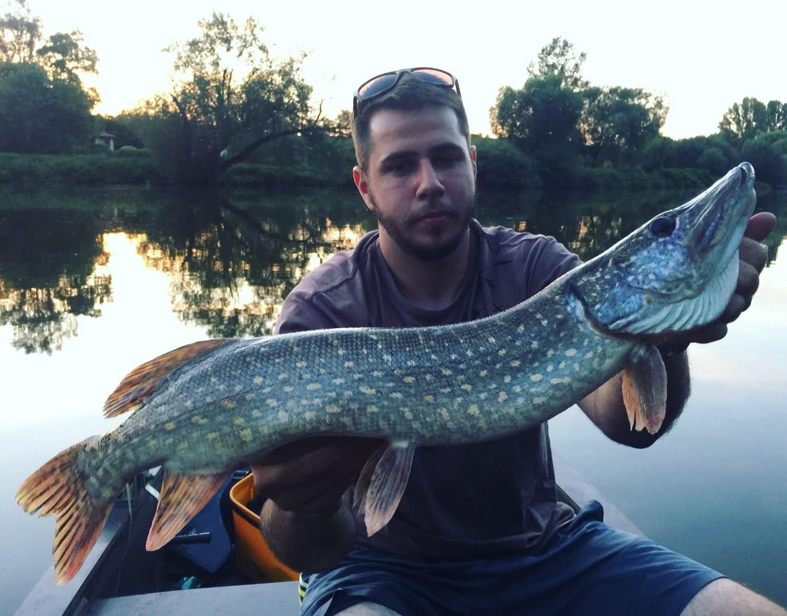Štika obecná, 65 cm, 2,1 kg, Ulovená přívlačí na Spro woblera 7 cm na Berounce 4.7.