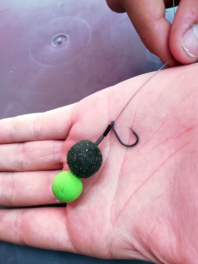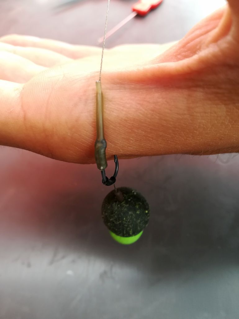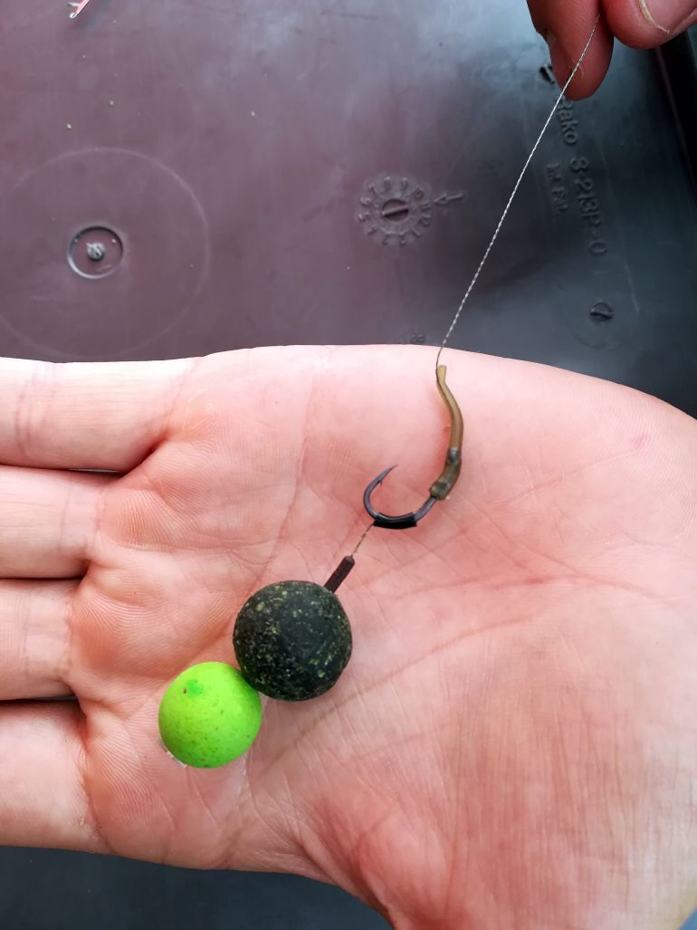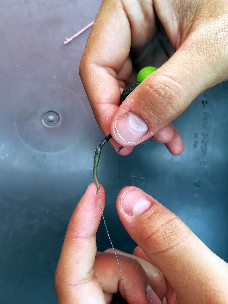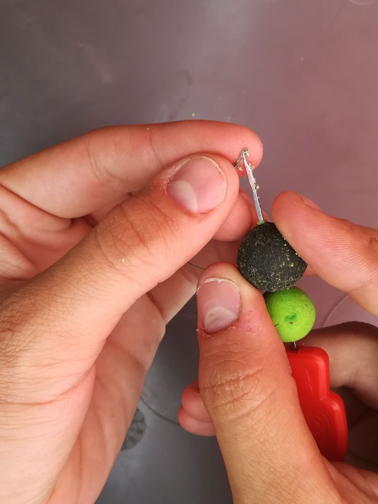 Takto nám vznikol mnou používaný klasický boiliesový nadväzec, ktorý je veľmi úspešný a len ojedinele sa stane, že by bola ryba zle pichnutá alebo že by sa mi vypla. |