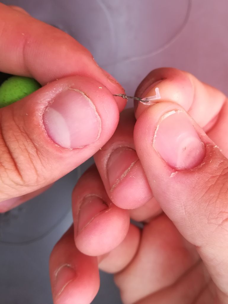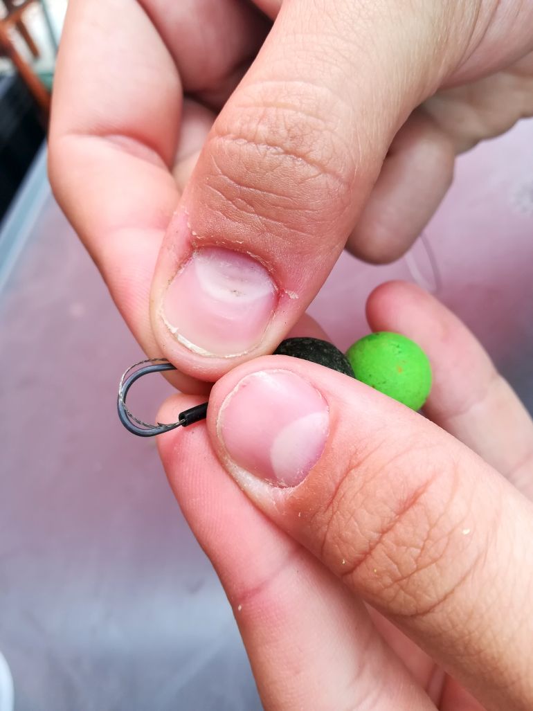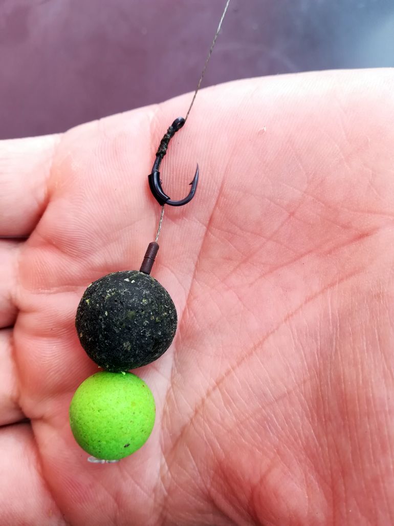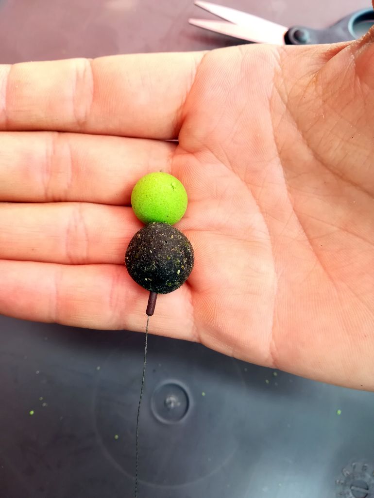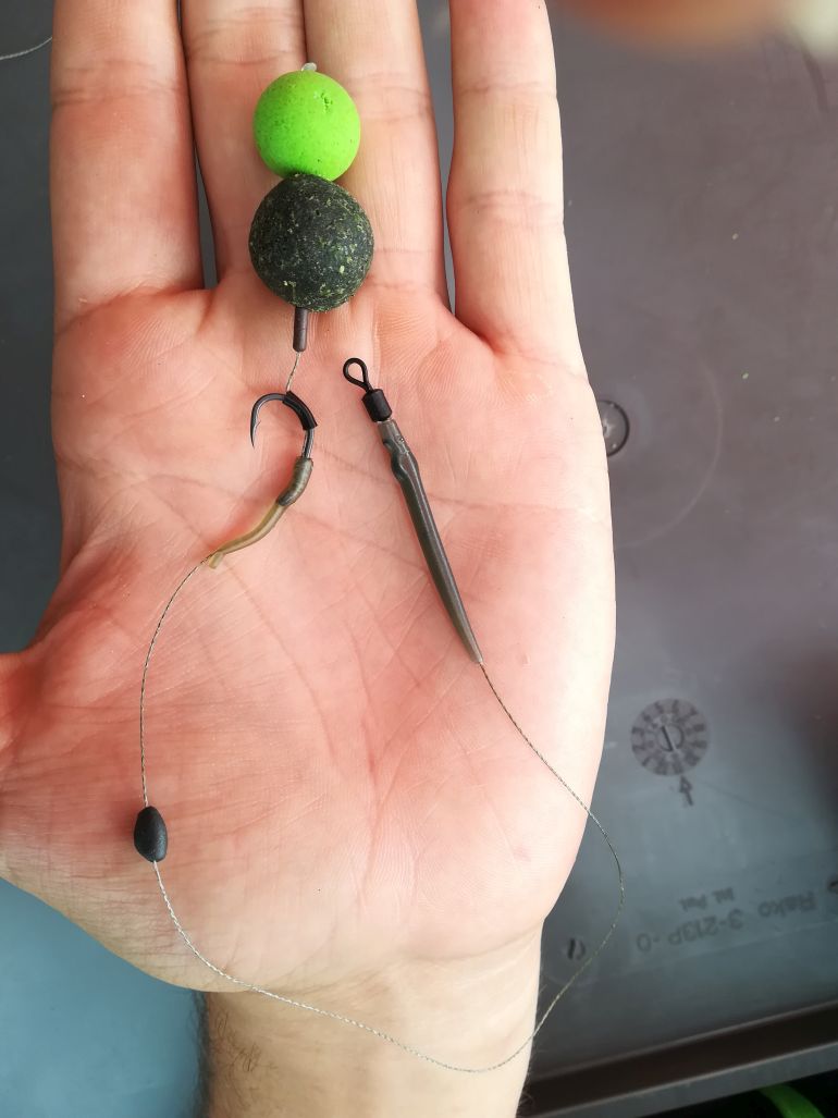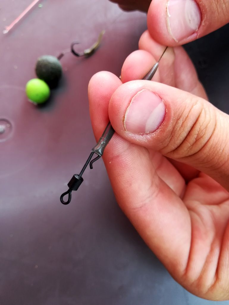 Takto nám vznikol mnou používaný klasický boiliesový nadväzec, ktorý je veľmi úspešný a len ojedinele sa stane, že by bola ryba zle pichnutá alebo že by sa mi vypla. |