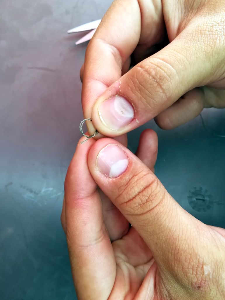| Urobíme klasický uzlík tak, aby nám vyšla približne 1 cm dlhá slučka. | 1cm slučka |