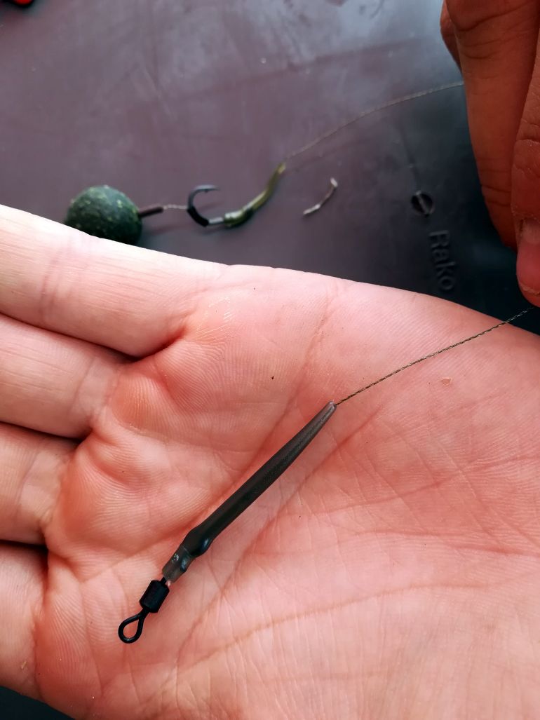 | Princíp spočíva v tom, že táto drobná záťaž spôsobí, že ako ryba nasáva nástrahu, toto malé plastické olovo ťahá nástrahu ku dnu, háčik sa oprie o spodnú časť tlamy ryby, stočí sa a zapichne sa v mieste, kde potrebujeme. | Nami zhotovený vylepšený kaprový nadväzec na boilies |