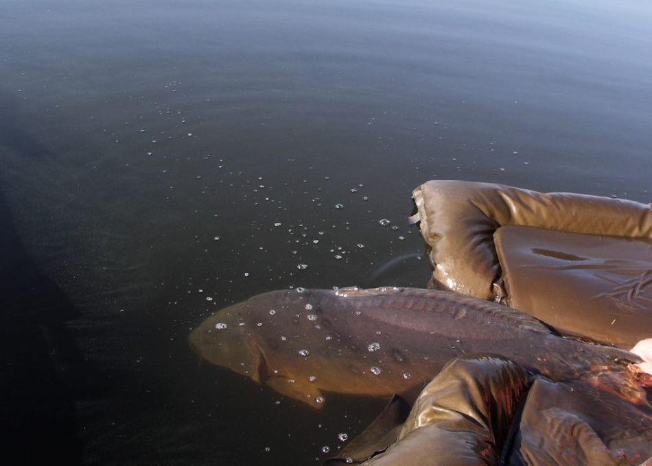 Poďme pustiť kapra. Vezmeme ho do vrecka na váženie alebo na mokrú podložku, potom dáme rybu do vody a pomôžeme jej zaujať svoju prirodzenú pozíciu.
