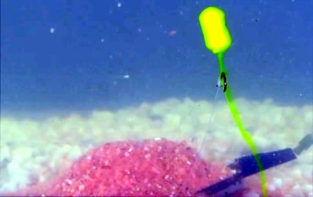 ![]() Krmivo sa na krmítku pomaly rozpadáva - vo vzniknutom mraku čaká na rybu nástraha s háčikom. |