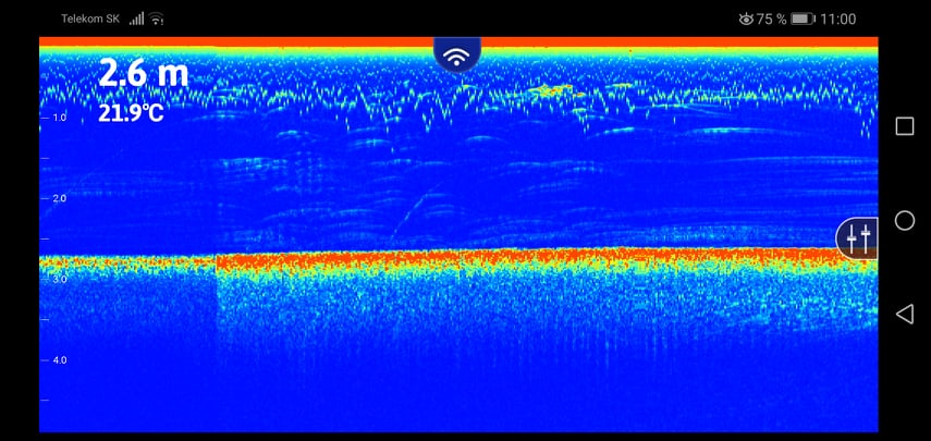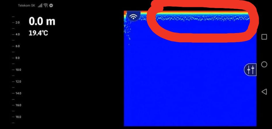 Tu bol sonar vo vode (obr. 3). A proste, je to tak silné, keď to je, že po hode ťažko niekedy rozoznať, či sa jedná o rybu alebo o toto (neviem, čo a prečo to robí). Inokedy mi to nerobievalo.