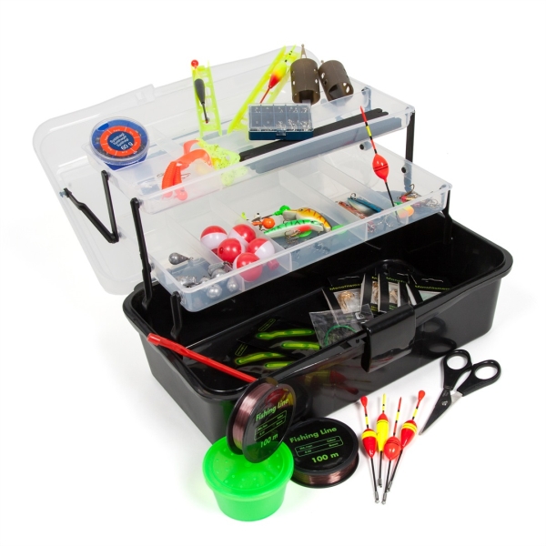 Kufrík plný rybárskej výbavy perfektný ako darček, pre deti a začiatočníkov aj príležitostných rybárov. Obsahuje: plaváky, krmítka, broky, olovká, obratlíky, nožnice, silon, woblery, vyberač háčikov a iné.