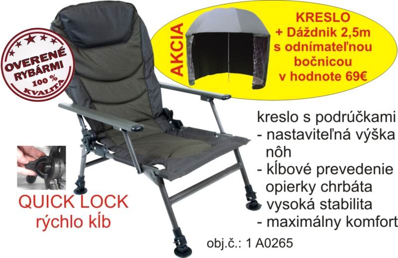 - AKCIA-Rybárske kreslo LUX + ZDARMA dáždnik s bočnicou
