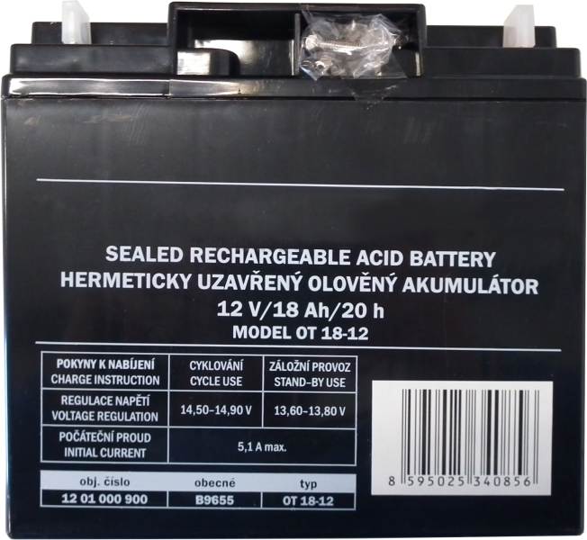 Bezúdržbový akumulátor 12V/17Ah. Využitie elektromotor Cobold,sonary a iné spotrebiče využívajúce 12V. Rozmer: V17cm,Š7cm,D18cm, hmotnosť 4,9kg.