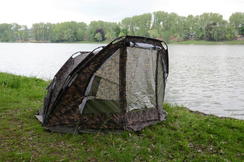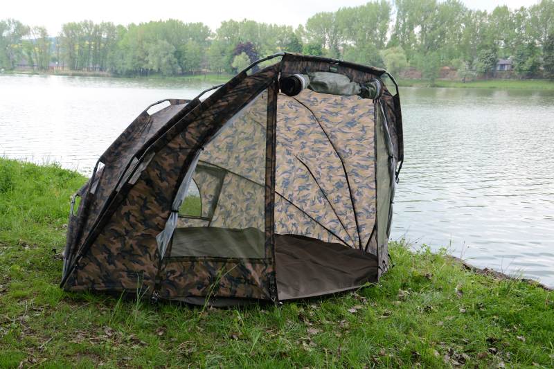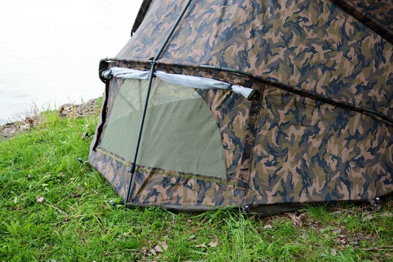 Veľký moderný bivak pre dve osoby v kamuflážnom prevedení, v ktorom splynie s prostredním. Odolná 4-ramenná konštrukcia z 18mm hliníkovej zliatiny vydrží aj silný nápor vetra. Plášť bivaku vyrobený z materiálu Duranylon 210DX2 je nielen odolný, ale hlavne zabezpečí ochranu aj za silného dažďa. Počas daždivého obdobia oceníme odnímateľnú podlahu z pevnej PVC tkaniny. Pre lepšie odvetrávanie sa na celom prednom paneli nachádza moskytiéra a na zadnom zase okno s moskytiérou.