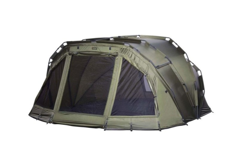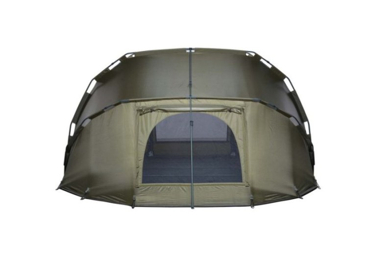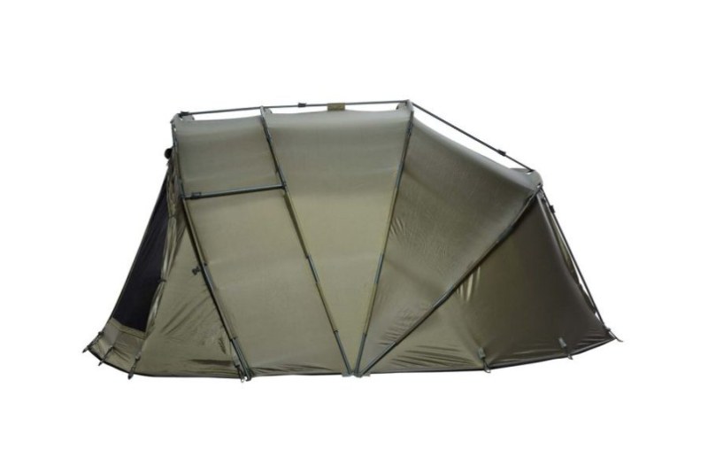 Priestranný bivak poskytujúci vysoký komfort dvom rybárom. Odolná 4-rebrová konštrukcia, duranylon 210DX2 s vodným stĺpcom 5000mm, odnímateľná a posuvná predná stena
