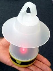 Vodeodolná, voľne stojaca alebo zavesiteľná lampa s nízkou spotrebou energie. Červené svetlo, biele svetlo. Napája sa na 2 AA batérie, nie sú súčasťou.