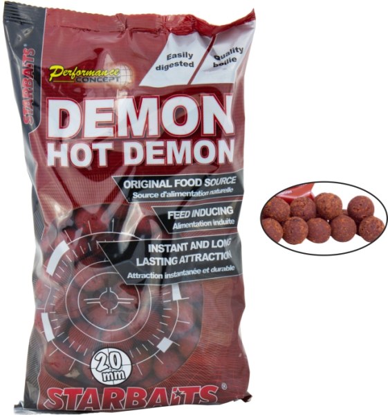 Boilies Hot Demon je špeciálne navrhnuté na rýchle chytanie. Je extrémne atraktívne, ryby ho okamžite vyhľadávajú a prijímajú. Obsah rybích a korenistých olejov, drveného korenia, vitamínov a minerálov podporuje žravosť rýb. Obsahuje množstvo prírodných látok bez pridaných farbív a aróm. Celkové zloženie boiles je navrnuté tak, aby čo najrýchlejšie prešlo tráviacim ústrojenstvom kapra a nezasýtilo ho. Napriek tomu napĺňa jeho nutričné požiadavky a účinnosť boilies je tak dlhodobá.