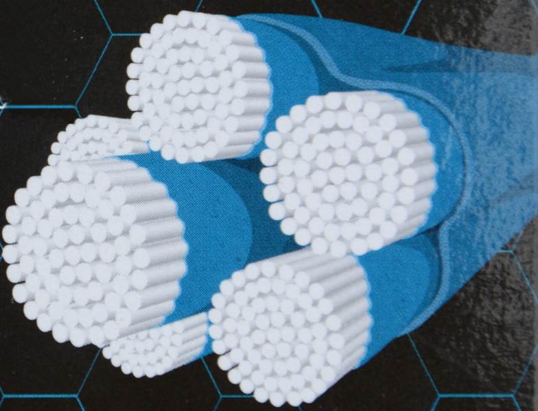 Pevnosť šnúry až o 25% s nízkou elasticititou (max. 2,5%) vedie k priamemu kontaktu a kontrole návnady. Termofixácia a špeciálne teflónové prevedenie. Šnúra s extrémnou odolnosťou voči oderu a má farebnú stálosť.