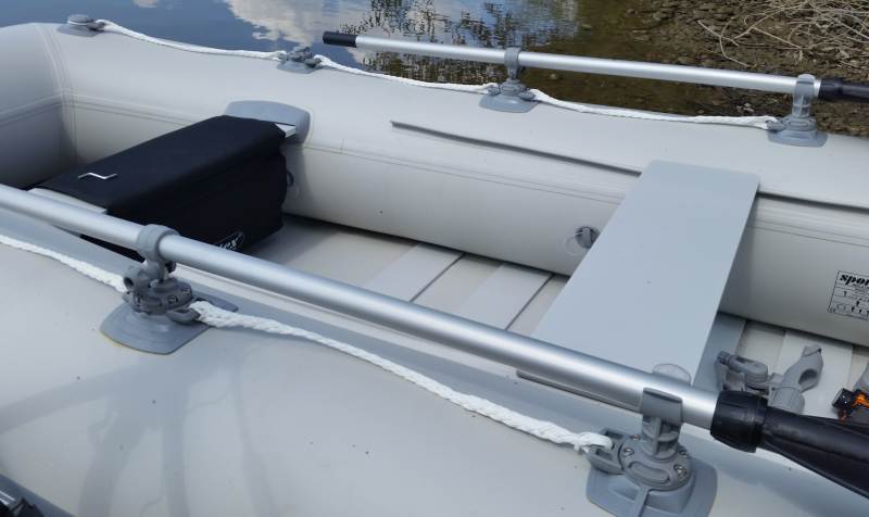 úchyt vesiel je veľmi praktický pri použití lodného motora kedy sa o veslá nemusíme starať a nepovaľujú sa voľne po člne