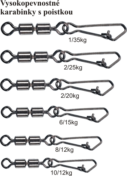 Extrémne silné rybarske karabínky, obratlíky na rybárske háčiky, rybárske montáže, vhodné na blyskáče, rotačky, woblery na lov dravcov, lov na prívlač, lov stuky, lov sumca, lov kaprov