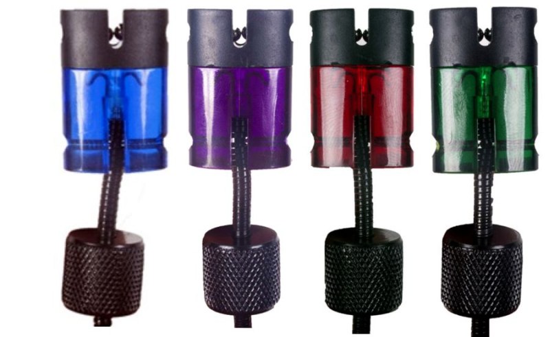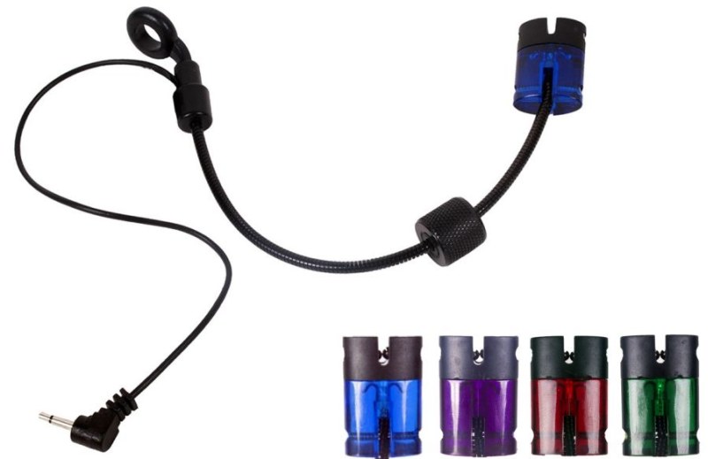 Signalizátor záberu s 2,5mm jackom na pripojenie k hlásiču. Pri zábere sa rozbliká. Posuvné závažie umožňuje nastaviť požadovanú silu odporu pri zábere od ryby.