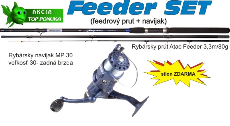 Feeder prút 3,3m/80g + feeder navijak zadná brz. +silon