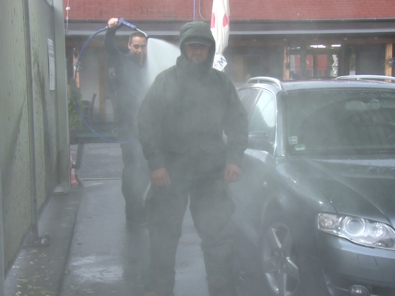 • Testovali sme oblečenie aj v autoumývarke a všetko pod ním ostalo suché a nepremokla ani jedna časť pod veľkým prúdom vody
