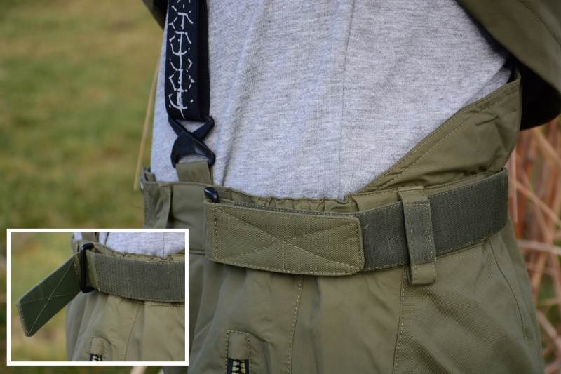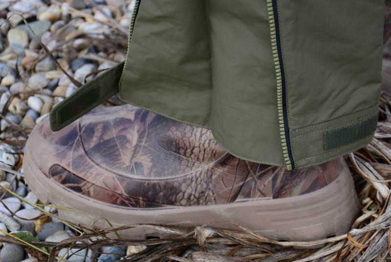Spodnú časť možno rozopnúť(okrem veľkostí XXXL/XXXXL), navliecť na vyššie športové topánky, stiahnuť rýchlo upínaním. Na tomto najviac znečisťovanom mieste nohavíc je použitý iný typ podšívky pre ľahšie očistenie blata po rybačke, turistike ... Spojenie dvoch rozdielnych podšívok je prostredníctvom neoprénovej manžety, ktorá zabraňuje vnikaniu vlhkosti do podšívky napr. pri vystupovaní z člnu.