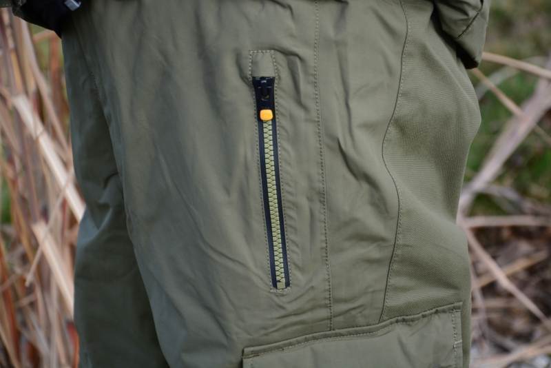 Praktické vrecká na bokoch rybárskych nohavíc Urus 5™ sú svojim strihom automaticky pri zatvorení chránené pred dažďom, snehom a vetrom. Svojim špeciálnym tvarom sú vhodné aj na väčšie rybárske potreby, rybárske krabičky bez pocitu záťaže a následného rizika vypadnutia . Samozrejmosťou u bočných vreciek je všité púzdro na mobilný telefón. (len v pravom vrecku)