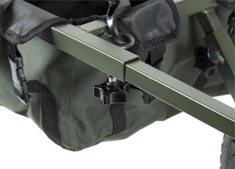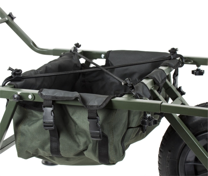 Použité boli len najkvalitnejšie materiáli a vozík je prepracovaný do najmenších detailov, aby splnil požiadavky aj v tých najnáročnejších podmienkach. Vozík vyrobený rybármi pre rybárov. Veľká výhoda vozíka je, odnímateľný vode odolný vak vozíku. Pomocou klipov ho vieme v priebehu niekoľkých sekúnd odpojiť od hlavnej konštrukcie a v prípade potreby umyť priamo pod vodou. Dve zadné nohy vozíka sú ukončené bahennými ťapkami, aby sa nezaboril vozík v rozmočenom teréne.