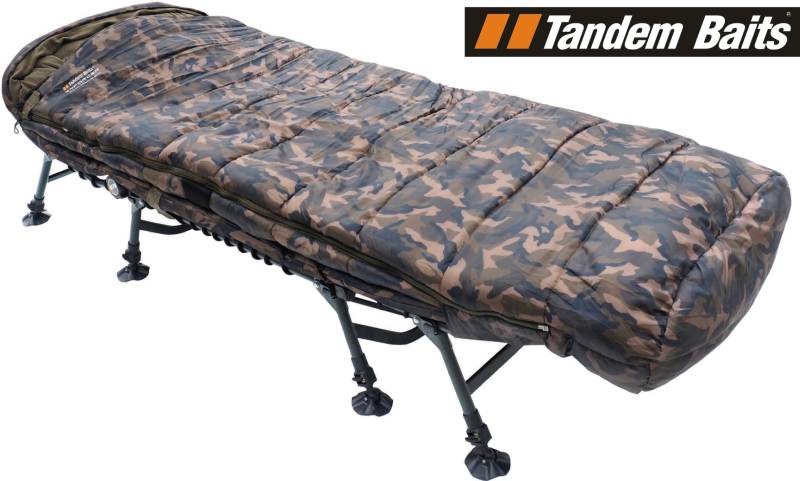 Dlhý vývoj štvor sezónneho spacáku v nenápadnej kamuflážnej farbe. Nový super-priedušný materiál s luxusným vnútorným flísom. Komplexný s upevňovacími prvkami a upínacím popruhom na rybárske lehátko, naviac je vybavený rýchloupínacím zipsom.