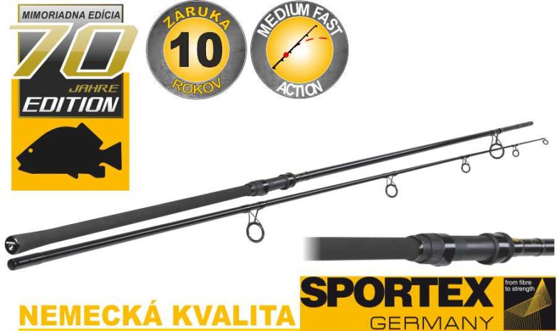 Spoločnosť SPORTEX sa rozhodla osláviť svoje 70-te výročie spolu so všetkými jej priateľmi a fanúšikmi. Pri tejto príležitosti sa aj vám rozhodla ponúknuť jedinečný kaprový prút za výnimočnú cenu, dostupný pre všetkých. Prúty si zachovávajú vysoký štandard kvality, typický pre SPORTEX. Prúty sú postavené na blankoch z vysoko modulovaného uhlíku so semi-parabolickou akciou. Samozrejme aj na tieto blanky poskytuje spoločnosť 10-ročnú záruku.