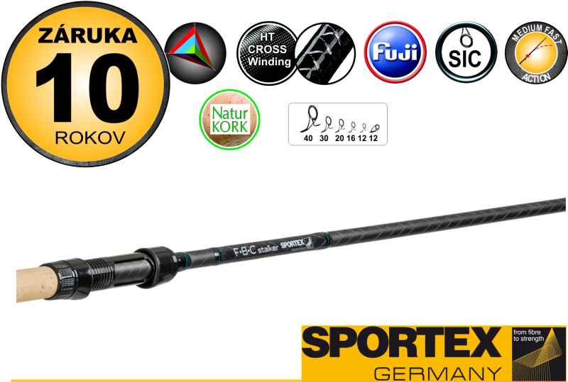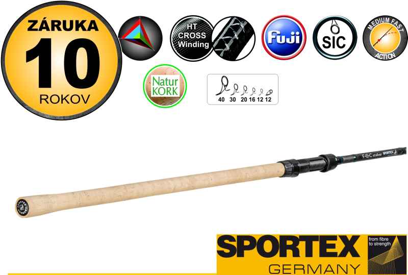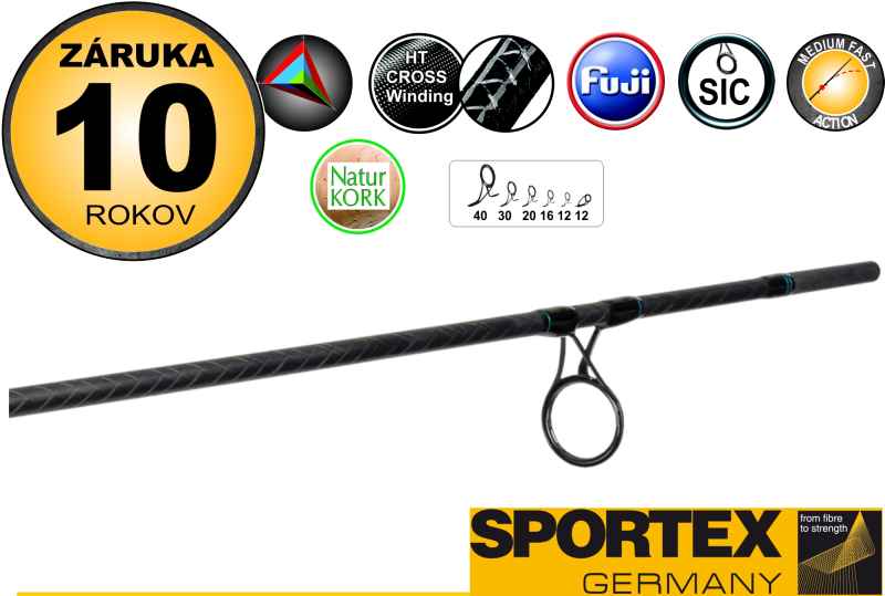 Sportex kaprové prúty kombinujú znalosti v dizajne s optimálnou akciou a funkčnými vlastnosťami ako žiadne iné prúty. Vďaka kvalitným vysoko modulovaným uhlíkovým vláknam alebo optimálnej kombinácii kevlarových/vysoko modulovaných uhlíkových vlákien s technológiou HT-Cross-Winding spletaných pásov sme vytvorili prúty ktoré ľudia dlhodobo vyhľadávajú. Vysoko kvalitné Fuji diely, ako sú najlepšie očká a sedlo navijáku dávajú prútom vynikajúci estetický vzhľad a úžitkovú hodnotu po mnoho rokov. Boli vyvinuté profesionálmi pre profesionálnych kaprárov - ľudí, ktorý chcú mať vo výbave to najlepšie.