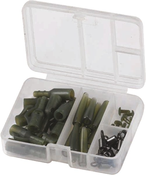 V tomto sete nájdete potrebné komponenty na koncové montáže. Bezpečnostné klipy na olovo, prevleky, piny na zaistenie a obratlíky. Z každého 5ks
