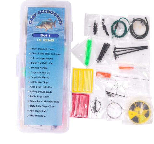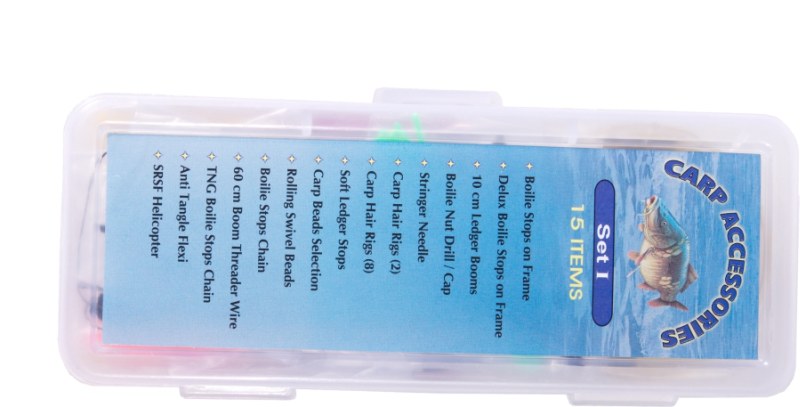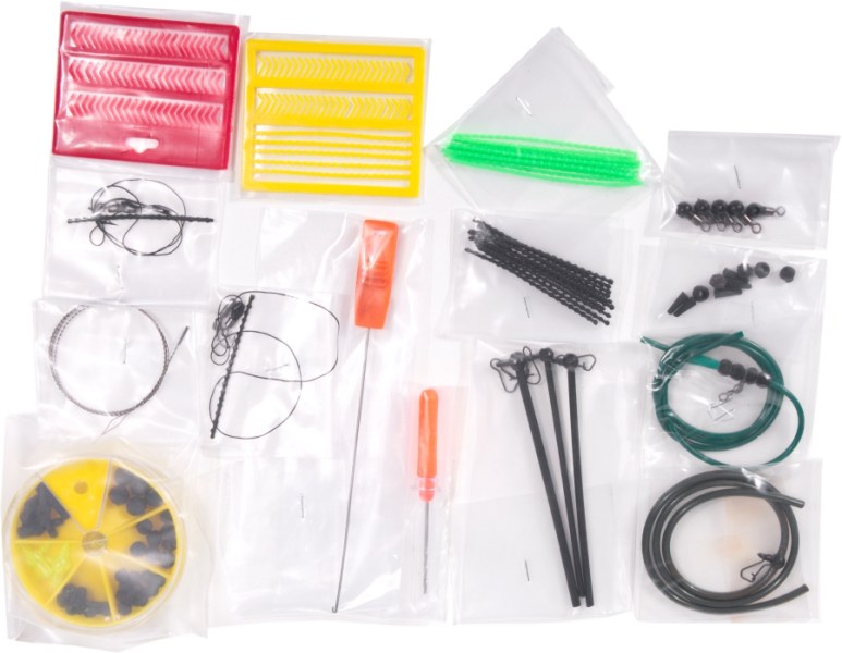 Set obsahuje 4 druhy zarážok, vrták, navliekaciu ihlu, 2 hotové nadväzce, obratlíky s prejazdom, stopery, feeder závesy, navliekací drôt,hadičky proti zamotaniu