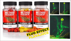 Absolútna novinka, boilies s Diffusion dvojitým efektom, pri ktorom sa z nástrahy vo vode hneď uvoľnuje žiarivý fluorescenčný mrak - imitujúci zvýrené dno ale aj silné arómy a chute tvoriace neodolateľne vábivú stopu pre ryby. Výdrž diffusion efektu 20h.
