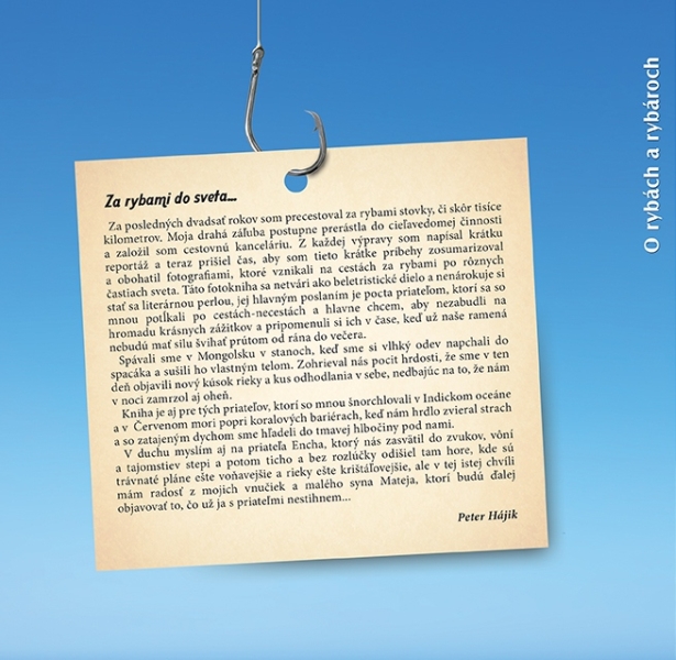 V knihe sú autorove zážitky, ktoré prezil sám aj so svojimi priateľmi na rybačkách po svete ako v Nórsku, Španielsku, Švédsku, Mongolsku a z tropických oceánov pri Maledivoch, Červenom mori a lososích riekach Britskej Kolumbií v Kanade.