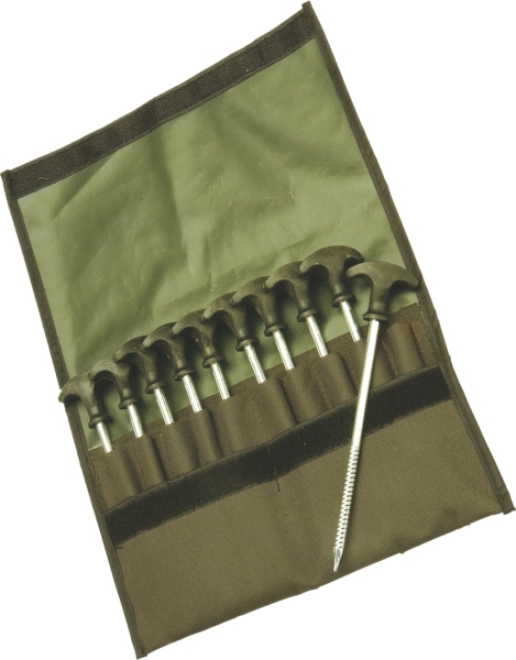 Kolíky na bivaky, stany, dáždniky a plachty. Sú vyrobené z kovu, majú plastovú rukoväť a spodná časť je so závitom. Kolíky sa môžu zatĺkať do podkladu. Majú prepravné nylonové púzdro.