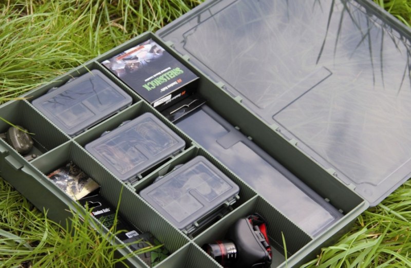 Set krabičiek so zásobníkom na nadväzce a 6timi malými krabičkami, určených pre rybársku bižutériu a príslušenstvo z kvalitného plastu s priehľadným vrchom.