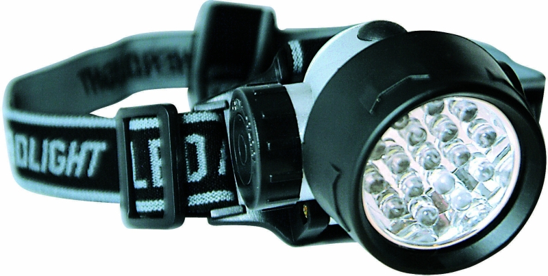 Čelová lampa - čelovka so 17-timi super svietivými a úspornými LED diódami. Nastaviteľný sklon a popruh. Napájanie 3xAAA batérie - nie sú súčasťou balenia.