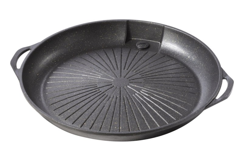 Univerzálny liatinový grilovací rošt s výpusťou, určený na rýchlu prípravu chutných pokrmov. Rozmer: dĺžka: 385mm x šírka: 340mm x výška: 55mm