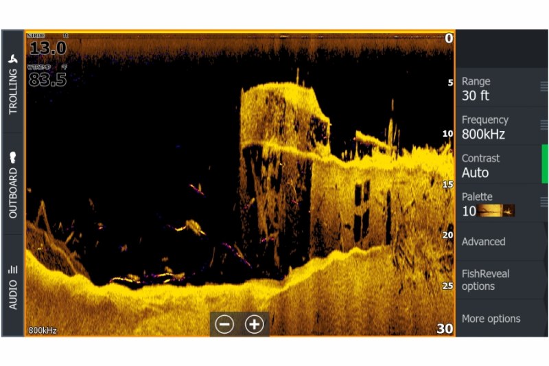 - Lowrance ActiveImaging™ HD 3-in-1 (HW) sonda-SideScan Fish Reveal