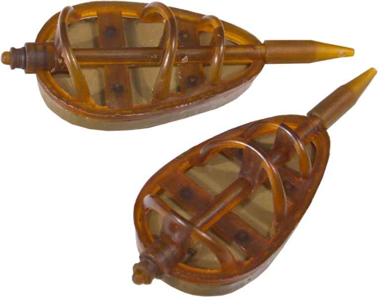 Rebrované method feeder krmítko dobre drží krmivo počas letu a dopadu na hladinu. Maskovacie prevedenie krmítok ľahko splynie s prvkami dna.