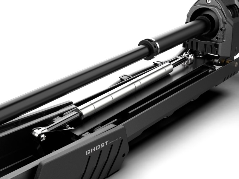 Ghost má dvojčinnú plynovú pružinu, ktorá uľahčuje spúšťanie a ukladanie motora. Okrem toho už nie je potrebné vyrovnávať spodnú časť pred uložením motora, pretože Ghost sa automaticky pri ukladaní položí na miesto a bezpečne sa upevní.
