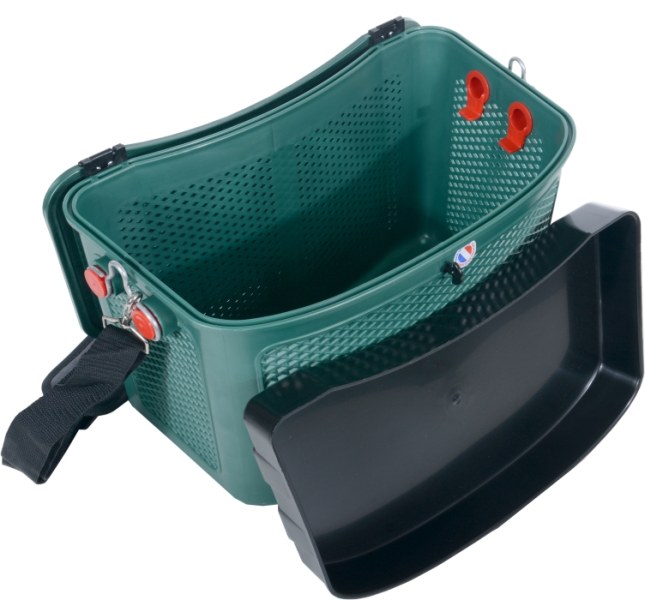 Košík je v zadnej časti prehnutý, aby priliehal k telu počas chôdze a pri brodení. Dodáva sa spolu s popruhom na rameno, ktoré je uchytené na pevných kovových prackách. Vo vnútri sa nachádza priehradka na odloženie potrebných drobností. Košík je pevne uzatvárateľný gumenou prackou.
