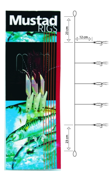 Tradičný morský nadväzec s piatimi nástrahami - ráčikmi na zlatých háčikoch, sú určené na lov morských rýb pilkrovaním. Hlavný vlasec nadväzca dĺžka - 138cm, bočný nadväzec dĺžka – 12cm.