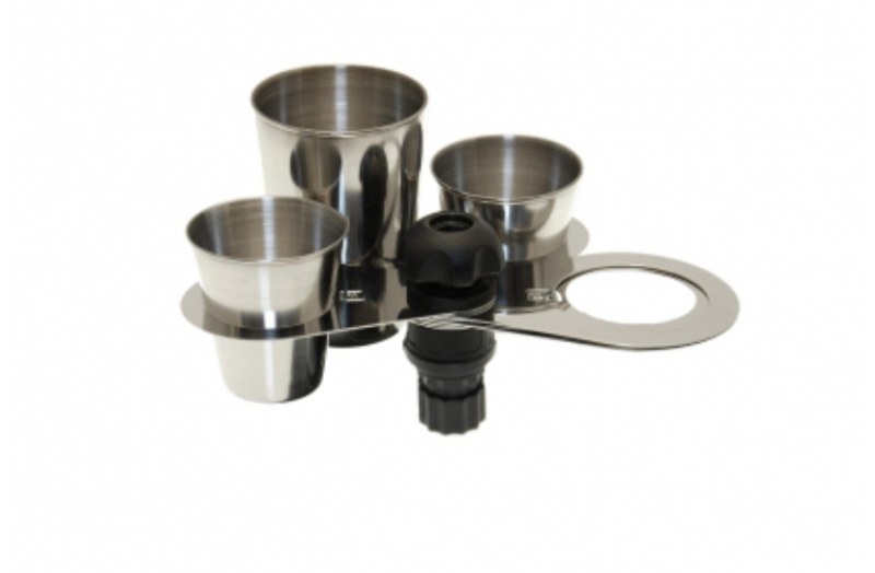 Nerezový držiak pohárov FASTEN. 3x držiak s vnútorným priemerom 42mm a 3x 51mm. Vhodné pre nerezové poháre Fasten