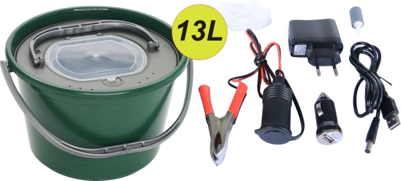• Okysličovač 230V/AA batérie/USB + vedro na živé nástrahy