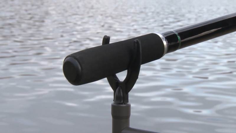 Prút umiestený na zadnej časti stojanu v opierkach na udice ktoré vám tak isto pribalíme v našom sete na pohodlné rybačky