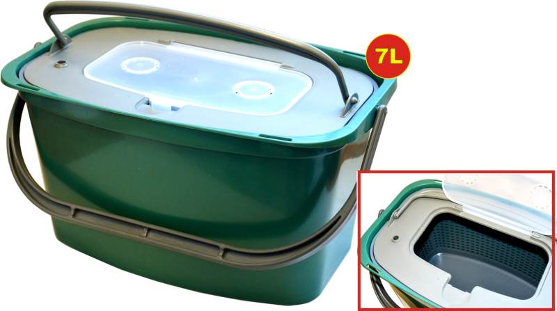 Vedro na prechovávanie rybiek. Vhodné na transport rybičiek, po príchode na rybárske revíry možné vybrať vnútornú časť a umiestniť do vody. Najlepší spôsob prechovávania rýb priamo vo vode na lovnom mieste!