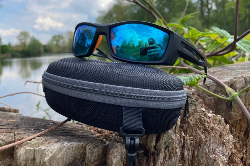 Rybárske okuliare s polarizačnými sklami a najlepším UV filtrom chránia váš zrak a umožňujú náhľad pod vodnú hladinu. Súčasťou je aj puzdro a handrička